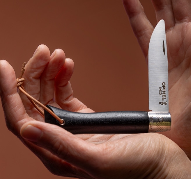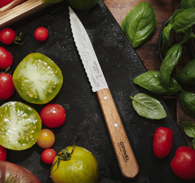 OPINELの定番折りたたみナイフNo.06~No.12や、お子さまへの贈り物にぴったりのLe petitシェフボックスセットのナイフの刃に、レーザーで名入れ加工することができます。ご注文は1本からお受けいたします。