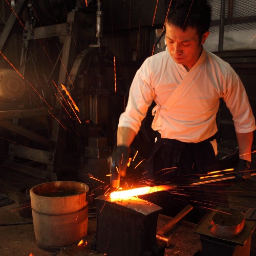 社名の由来となった二唐家は、1803年から鉄砲鍛冶や武器職人として津軽藩に仕えていた武士の家系でした。第二次世界大戦後には鍛造の技術を活かし、ナイフや農具といった実用品の製造に転向。現在では、二唐刃物はその優れた品質だけでなく、独特のダマスカス模様や槌目模様が、日本国内のみならず海外でも高い評価を得ています。