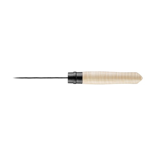 ハンドルには重硬な天然木・カーリーメープルを使用。その繊細な色味と虎斑(とらふ)を思わせる美しい縞模様が、ナイフ全体の品格を高めています。