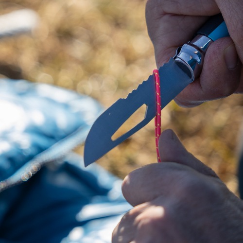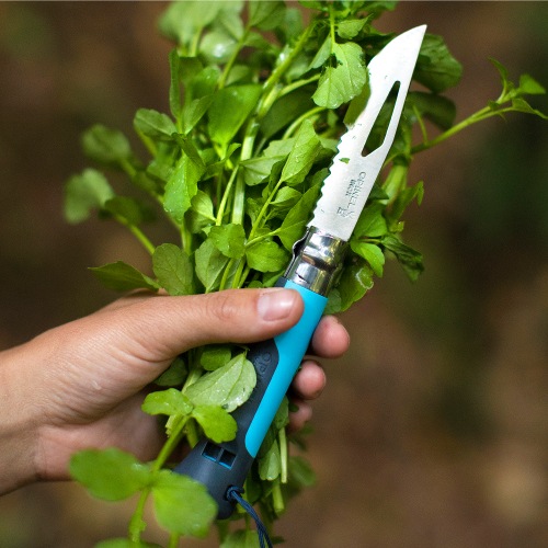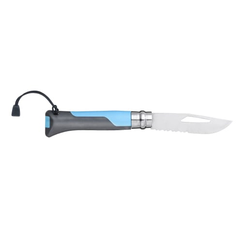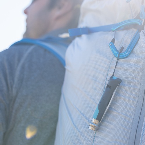 ロープカットに便利な波刃を併せ持つハーフセレーションナイフです。刃にはシャックル留めを装備。ハンドル底面はホイッスルとして使用できるので緊急時に役立ちます。使用するときも、折りたたんだときも、刃をしっかりと固定できる安全ロック機構のビロブロック付き。登山、トレッキング、パラグライディング、マリンスポーツなど、さまざまなアウトドアシーンで役立つモデルです。