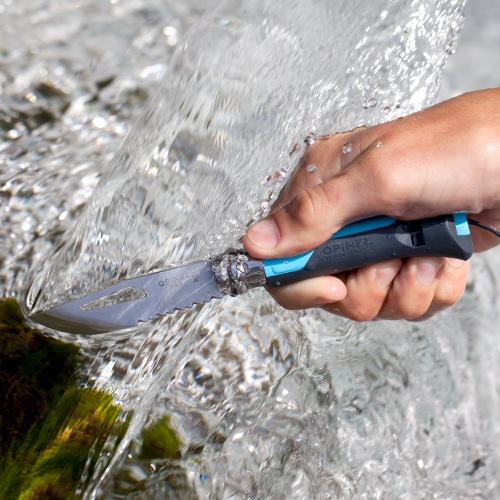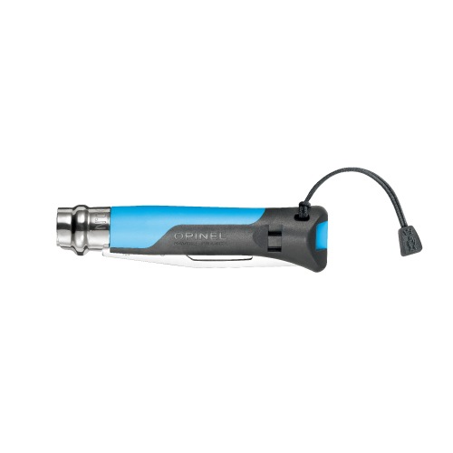 ハンドルは、衝撃に強く、耐水性と耐熱性に優れたガラス繊維強化ポリアミド製。-40℃から80℃までと極端な温度変化への耐性があります。ハンドル底面についたホイッスルは、ピーレス構造(コルク玉不使用)のため全天候で機能します。音圧は110デジベル。ハンドルには「OPINELのロゴ」と「SAVOIE-FRANCE」の文字が記されています。