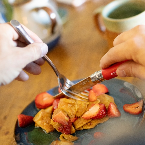 使用するときも、折りたたんだときも、刃を固定できるビロブロック付き。OPINEL独自の安全ロック機構であるビロブロックはシンプルな構造でありながら、ロックの確実性が高いことが特徴です。
