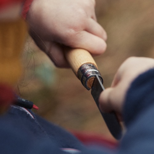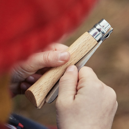 使用するときも、折りたたんだときも、刃を固定できるビロブロック付き。OPINEL独自の安全ロック機構であるビロブロックはシンプルな構造でありながら、ロックの確実性が高いことが特徴です。