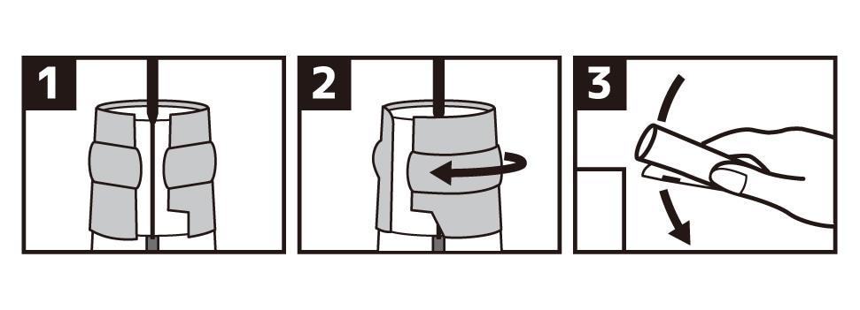 ②刃を出した後や、刃の収納時は、リングを戻してロックを固定してください。