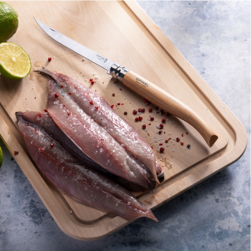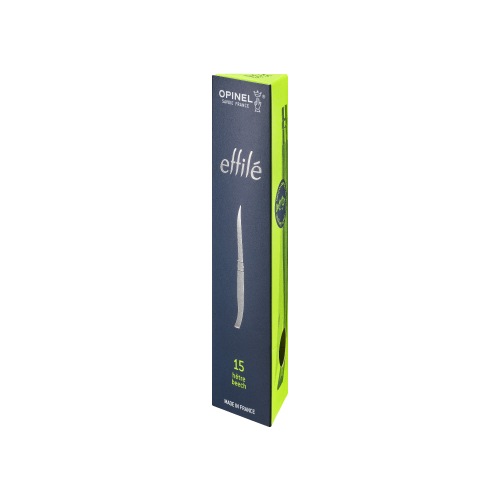 スリムナイフは、流線形のハンドルが特徴の折りたたみフィレナイフです。魚の調理に適した柔軟で薄い刃には、切れ味の良いステンレススチールを使用。リング部分には、シリーズ名Effile(エフィレ)の文字が刻印されています。