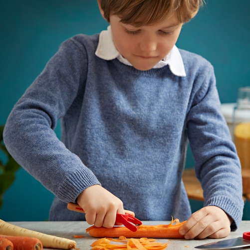 料理のお手伝いがしたい小さなシェフ向けのLe petit Chef(ル プティ シェフ)コレクション。食材の切り方、ピーラーの使い方が安全に習得できるよう設計されています。包丁、フィンガーガード、ピーラーが揃った子ども用お料理セットです。