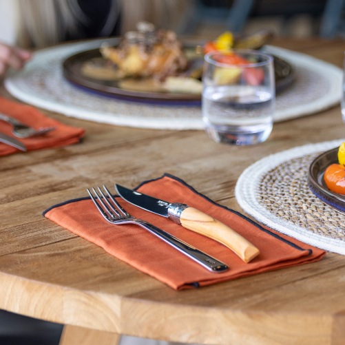 Effileスリムナイフは、流線形のハンドルが特徴の折りたたみフィレナイフです。魚の調理に適した柔軟で薄い刃には、切れ味の良いステンレススチールを使用。ハンドルのオリーブ材は、特徴的な木目が変化に富んで美しく、表面が滑らかで手によく馴染みます。リング部分には、シリーズ名Effile(エフィレ)の文字が刻印されています。