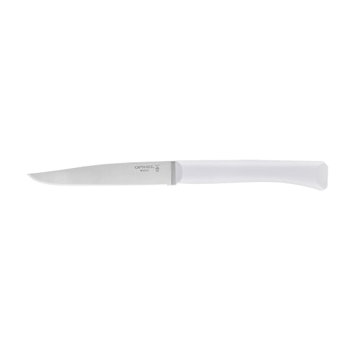 刃の鋼材には、実用硬度HRC55~57のステンレススチールを使用しています。錆びにくさとメンテナンスの容易さには定評があります。刃身には「OPINELのロゴ」「王冠を戴く手」と共にステンレスを意味する「INOX」の文字が刻印されています。