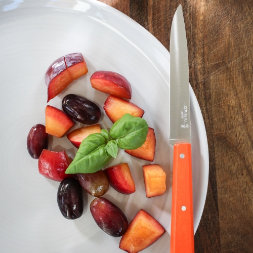 テーブルナイフでは珍しい豊富なカラー展開。シックな色から鮮やかな色まで、全16色の中からお気に入りの1本をセレクトできます。刃は、切れ味がよく錆に強いステンレススチールを採用しています。ハンドルに使用されているシデ材は、重硬で丈夫な天然素材です。