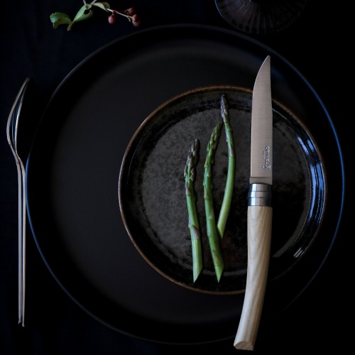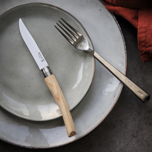 アッシュ材のハンドルはライトベージュからホワイトの明るい色調で、テーブルコーディネートを華やかに仕上げます。