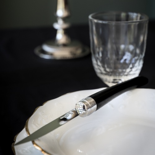 Table Chicシリーズは、洗練されたクラシックデザインのテーブルナイフ4本セット。手に馴染む流線形のハンドルと、トルコの剣にインスパイアされたヤタガン型の刃が特徴です。刃は、錆びにくくメンテナンスの手間がかからないステンレススチール製で、日常使いに最適。ビロブロックヒントを得たボルスター(ハンドルと刃の間のリング部)は、一部が平らな形状になっており、テーブルに置いた時に転がりにくいのがポイントです。