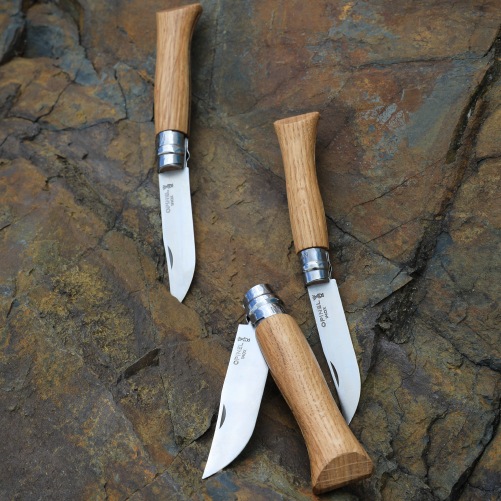 錆に強く、頻繁なメンテナンスが不要なステンレススチールの刃の折りたたみナイフです。ハンドルに使用されているオーク材は、重硬で傷がつきにくく耐久性に優れています。