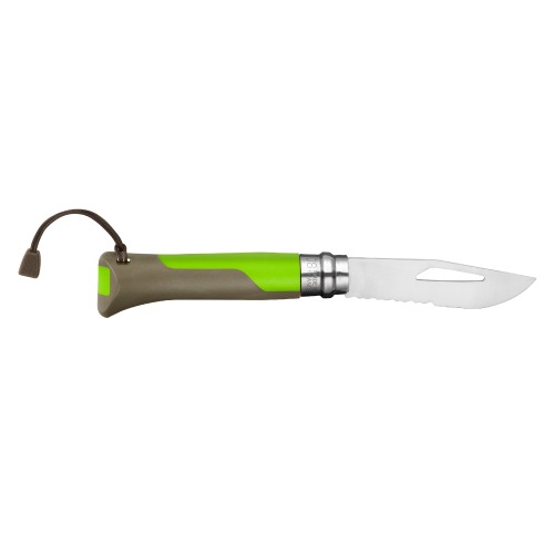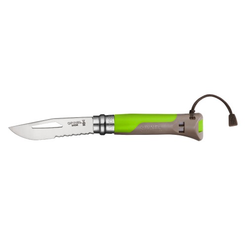 ロープカットに便利な波刃を併せ持つハーフセレーションナイフです。刃にはシャックル留めを装備。ハンドル底面はホイッスルとして使用できるので緊急時に役立ちます。使用するときも、折りたたんだときも、刃をしっかりと固定できる安全ロック機構のビロブロック付き。登山、トレッキング、パラグライディング、マリンスポーツなど、さまざまなアウトドアシーンで役立つモデルです。