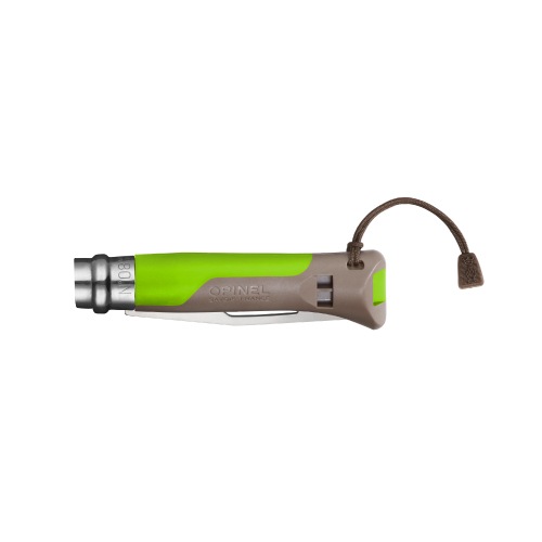 ハンドルは、衝撃に強く、耐水性と耐熱性に優れたガラス繊維強化ポリアミド製。-40℃から80℃までと極端な温度変化への耐性があります。ハンドル底面についたホイッスルは、ピーレス構造(コルク玉不使用)のため全天候で機能します。音圧は110デジベル。ハンドルには「OPINELのロゴ」と「SAVOIE-FRANCE」の文字が記されています。