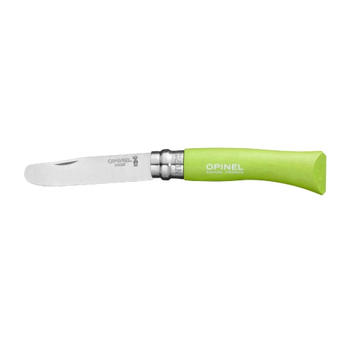 刃先を丸めることで安全に配慮した、お子さまの初めての一本にぴったりな折りたたみナイフです。