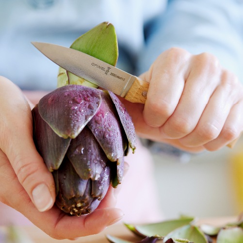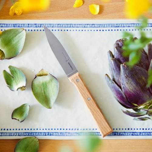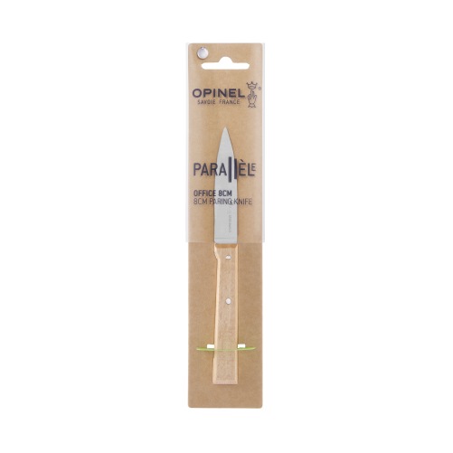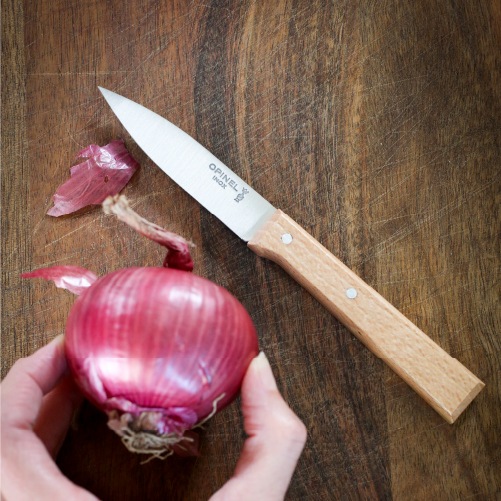 ハンドルには、フランス産のブナ材を使用しています。木目が細かく均質で強度に優れているため、オピネルのハンドルに最もよく使われている木材です。湿気や汚れから保護するために透明のニスを塗布して仕上げられています。