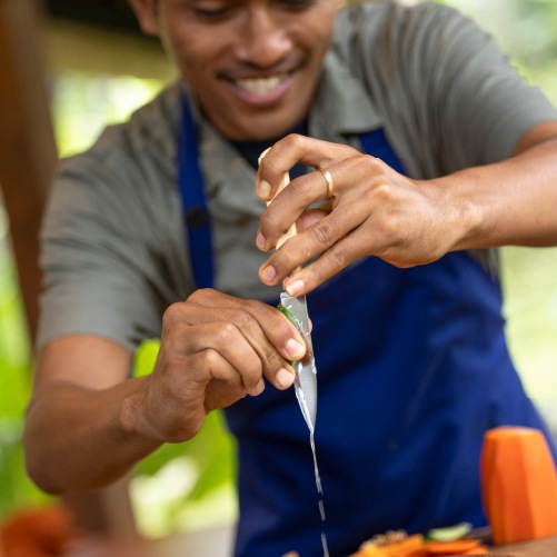 短く尖った刃は、角切りすることはもちろん、小さな果物や野菜の皮を剥く時にも便利です。