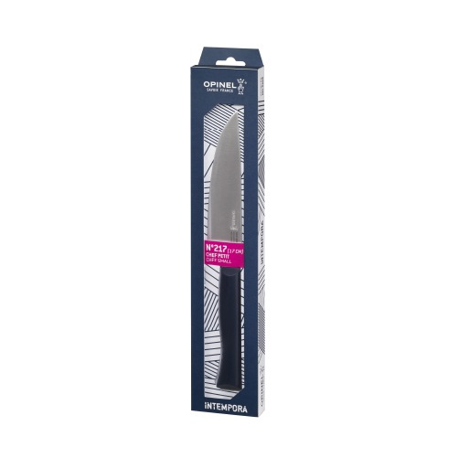 INTEMPORAコレクションのスモールシェフナイフNo.217は、スタンダードな形状で普段使いに最適です。食材のカットにはもちろん、薄くスライスしたり、ミンチにしたり、さまざまなシーンで便利にお使いいただけます。