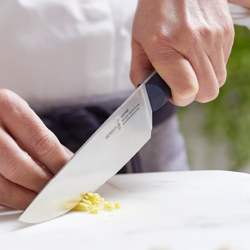 刃がハンドルまで一枚鋼で連なる「フルタング構造」を採用。強靭で耐久性に優れ、鋭い切れ味を保ちます。その高い性能や品質、バランスの良さから、フランスの名門調理学校でも採用されています。