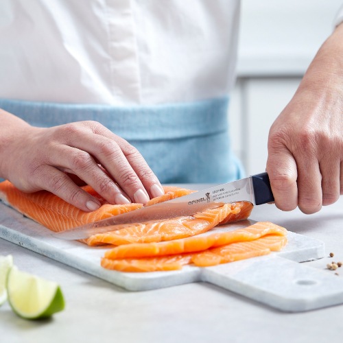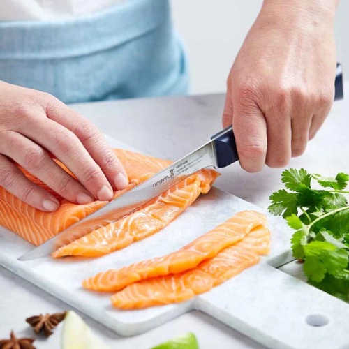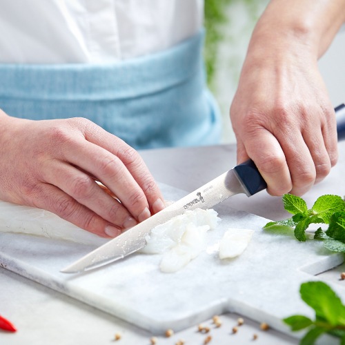 INTEMPORAコレクションのフィレナイフNo.221は、薄く柔軟性の高い刃により、デリケートで崩れやすい魚の身も綺麗に捌くことができます。魚や肉だけでなく、フォアグラやテリーヌなどのスライスにも適しています。