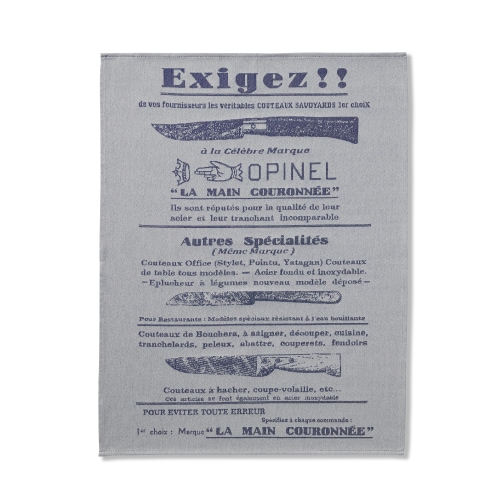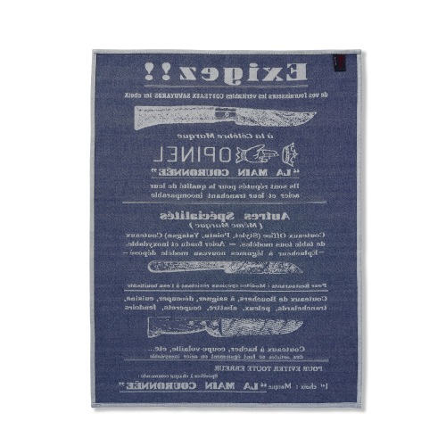 OPINELの広告ポスターがそのままティータオルになったような、遊び心をくすぐるデザインです。