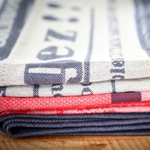フランスで120年以上の歴史を誇る織元、Les TissagesMoutet社が仕立てた、綿100%の高品質なジャガード織ティータオルです。