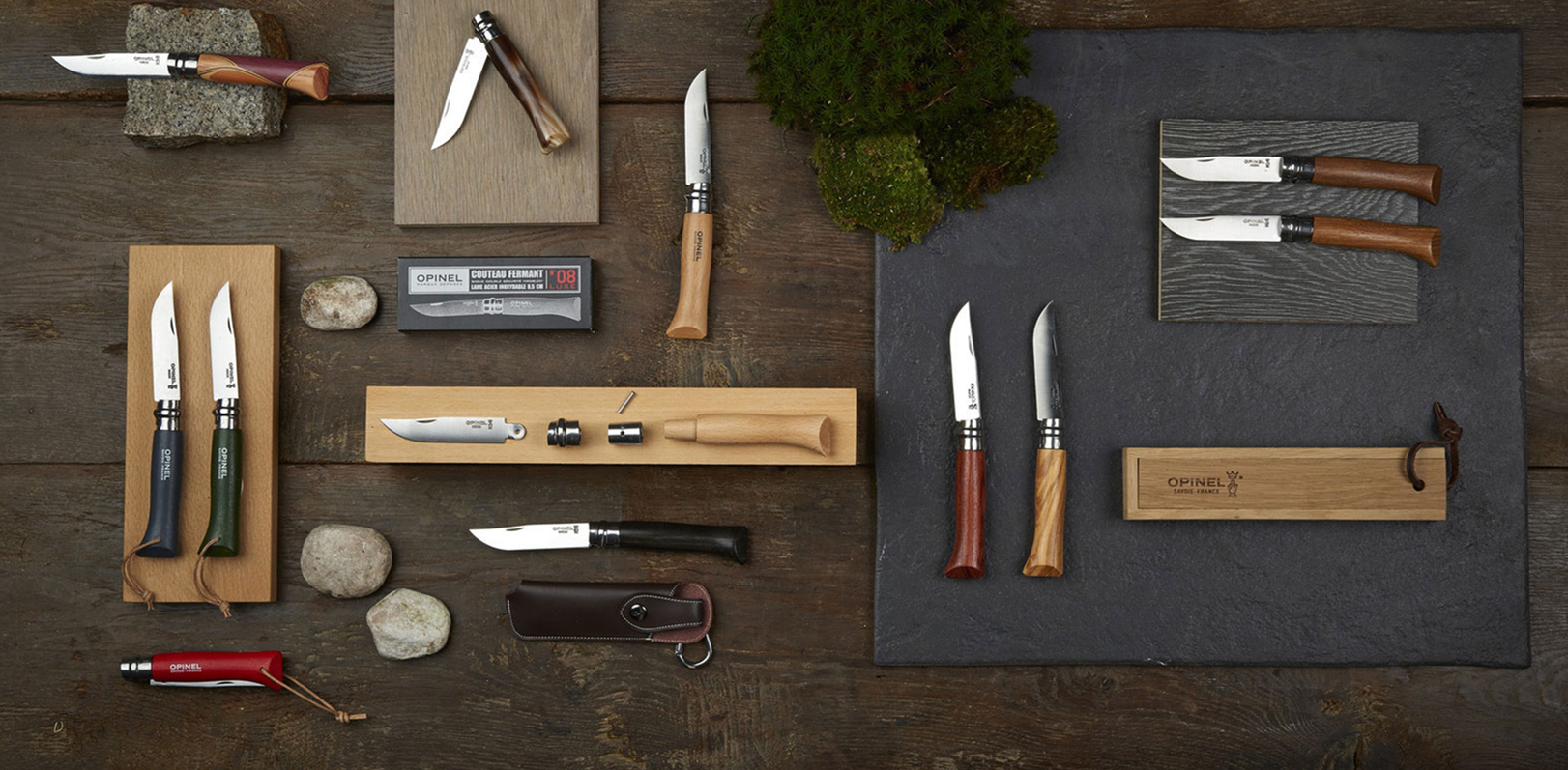 OPINEL社は、その優れた品質によりブランドとしての地位を確立し、130年にわたり高い評価を受け続けてきました。製品ラインナップは幅広く、DIYやアウトドア、ガーデニングに使えるナイフやポケットツールのほか、キッチンナイフやテーブルナイフなども展開しています。